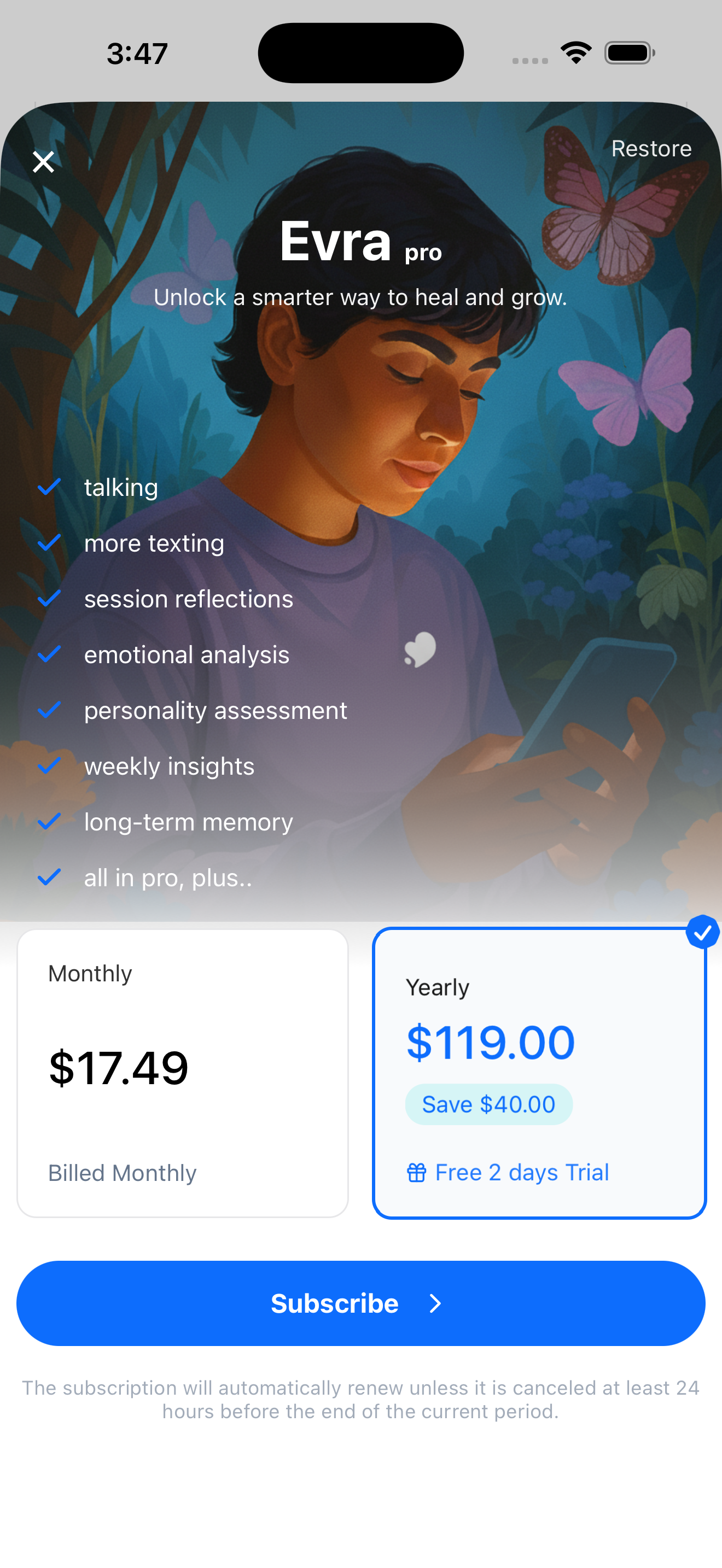 Evra – ai mental wellness offers a free plan. Check the website for feature limitations and upgrade options.